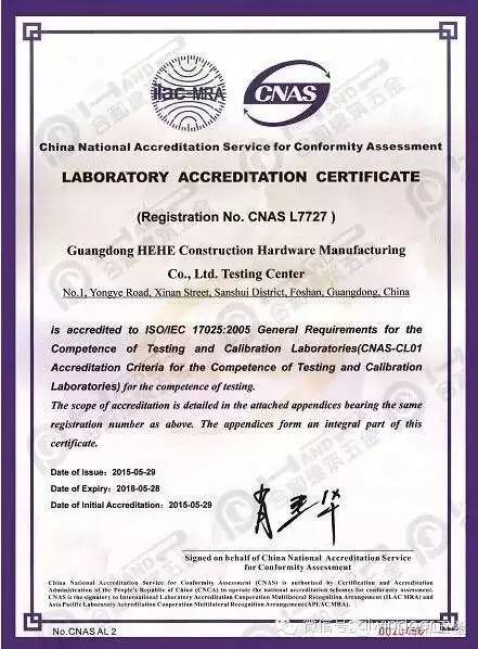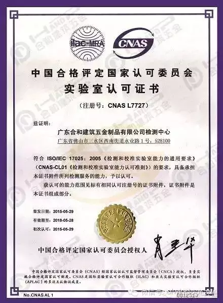 广东合和五金检测中心荣获CNAS实验室国家认可